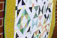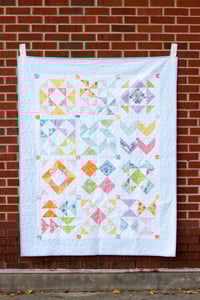 Practice your half-square triangle making skills with this simple 12 block sampler quilt! Instructions for 2-at-a-time and 4-at-a-time half-square triangle construction included. You’ll be more comfortable making half-square triangles in no time!